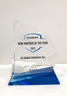 「New Partner of the Year 2023」は、2022年度に最も顕著な実績を残した新しいパートナーに授与される賞です。IIJグローバルソリューションズは、Proofpoint社のメールセキュリティ、セキュリティ教育ソリューションを提供しております。