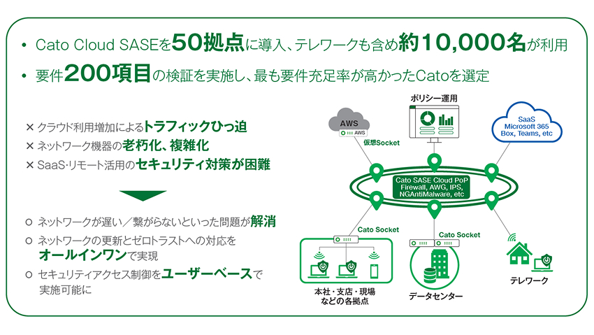約1万ユーザーが利用するグループのネットワーク環境を「Cato SASE クラウド」へ移行